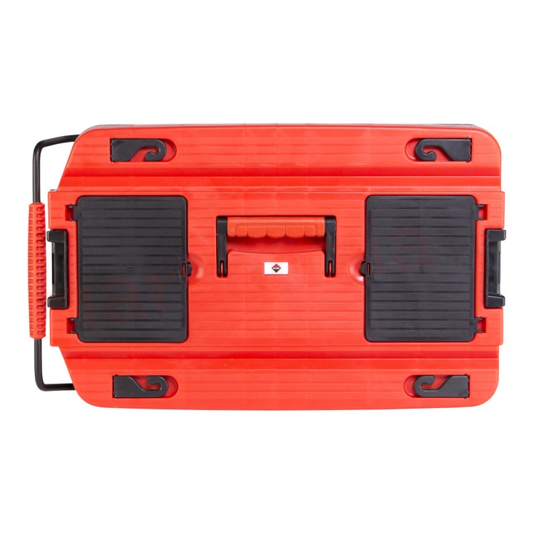 - Dwa duże gumowe koła oraz wysuwany uchwyt, co ułatwia transport