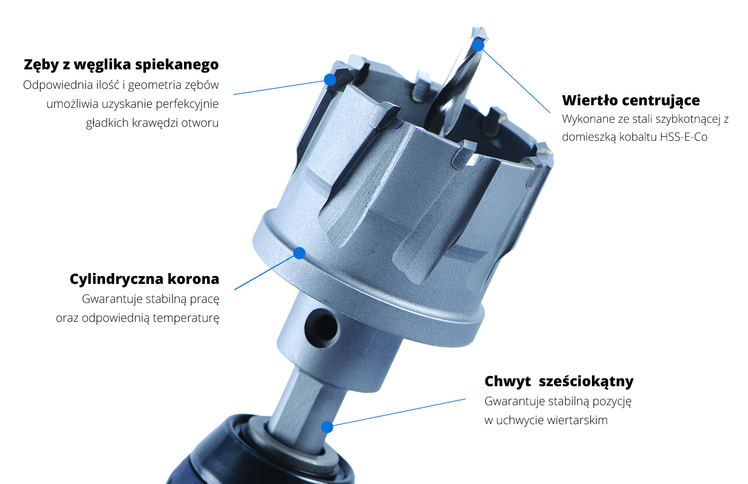 Ilość i geometria zębów umożliwia uzyskanie perfekcyjnie gładkich krawędzi otworu