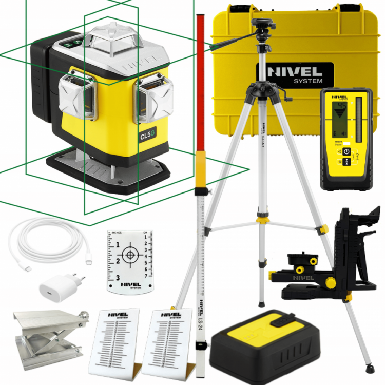 NIVEL SYSTEM LASER KRZYŻOWY ZE SPADKAMI CL5G ZE STATYWEM SJJM1EX I CZUJNIKIEM CYFROWYM RD800 I ŁATĄ LS24