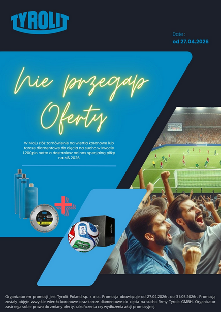 W maju złóż zamówienie na wiertła koronowe lub tarcze diamentowe do cięcia na sucho w kwocie 1200pln netto a dostaniesz od nas specjalną piłkę na MŚ 2026.